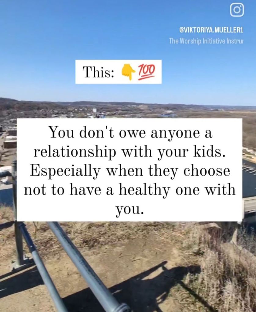 Helt rätt, jag är inte skyldig att upprätthålla några relationer med vuxna människor, särskilt inte sådana som är villkorade, inte ens med mina barn.