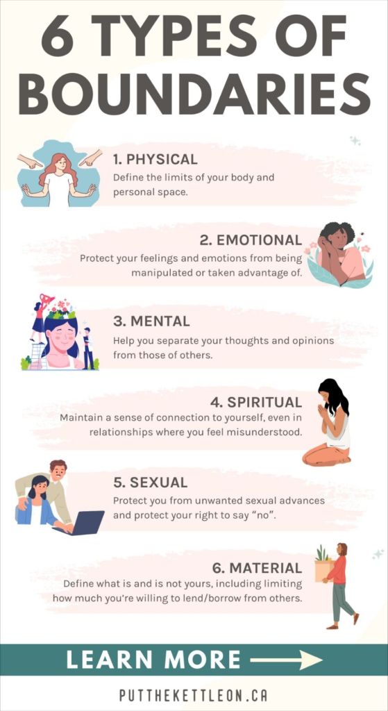 Såvida du är någorlunda vuxen och inte är utsatt för fysiskt tvång och övervåld så är dina gränser helt ditt ansvar. Ditt ansvar att såväl upprätthålla som identifiera och inte överskrida. Du måste själv vara/bli medveten om var dina gränser går och sedan inte själv överskrida dem. Inte överskrida dem genom tillåta andra eller själv göra saker som inte känns ok. Enklaste sättet att illustrera detta är väl i en sexuell situation.
