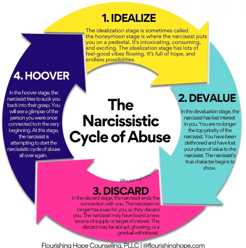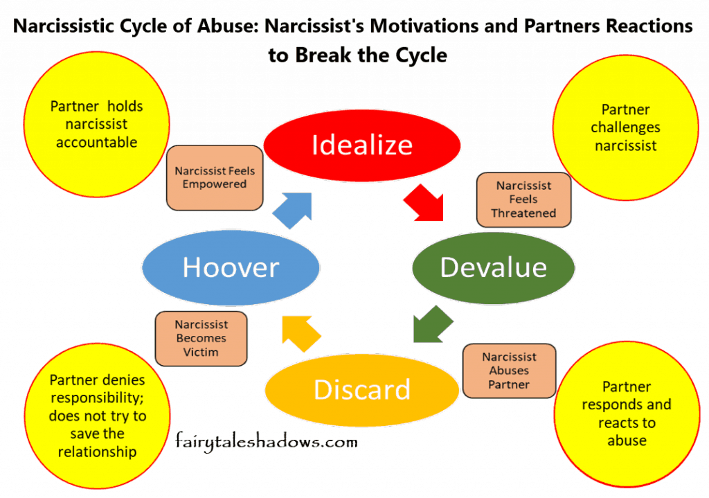 https://fairytaleshadows.com/outsmart-the-narcissist-a-guide-to-breaking-the-idealize-devalue-discard-hoover-cycle/: The ”Cycle of Abuse”