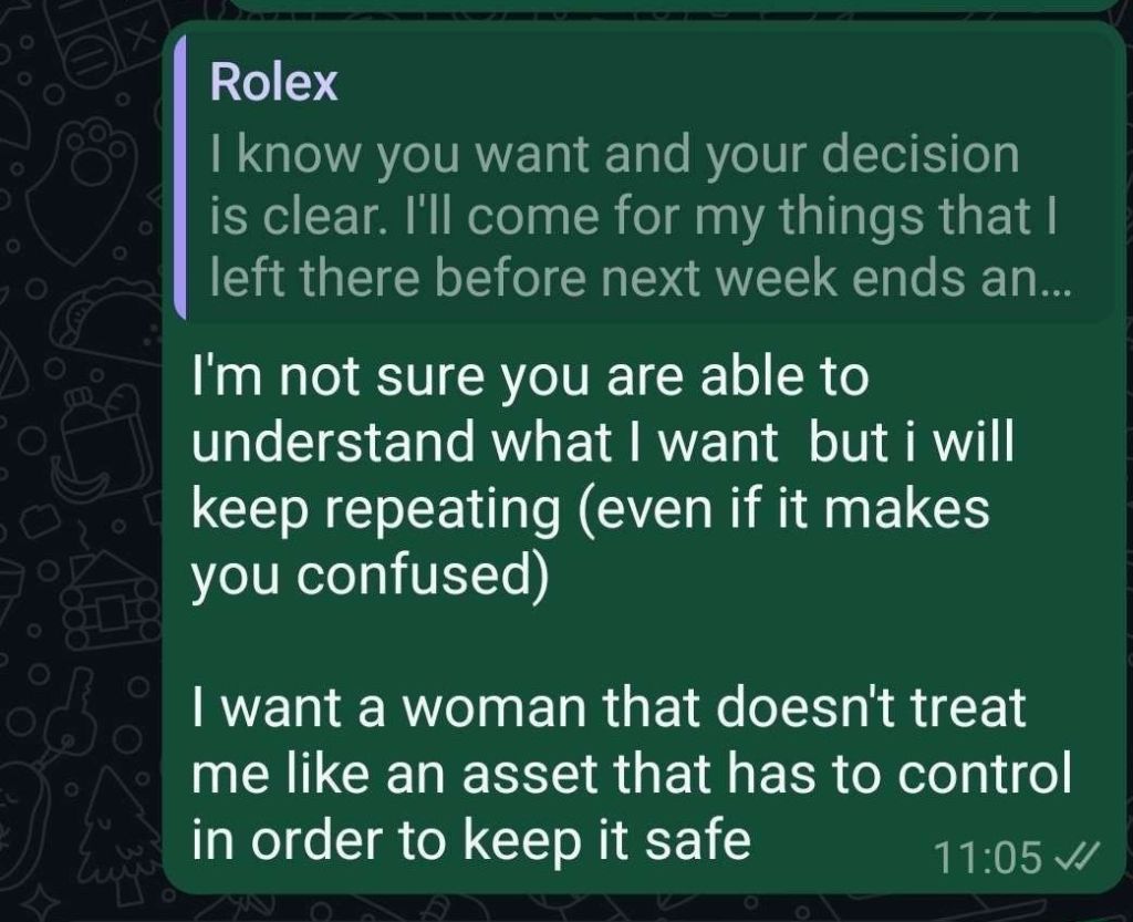 Det är ingen tvekan om att Rolex har starka Narcisstiska försvar, lever mycket i sin egen värld och inte helt litar på någon (inklusive sig själv…..) Tecken på detta tyckte jag mig se redan innan vi träffades. Jag har fortsatt att se fler och insikter kring hur jag bidragit till att få denna ”lösning”att ”fungera” (och det pris jag själv fått betala för detta…..) har sakta men säkert vuxit fram de senaste 7-8 månaderna men allra mest de senaste 5 (sedan jag kom åter från Sverige).