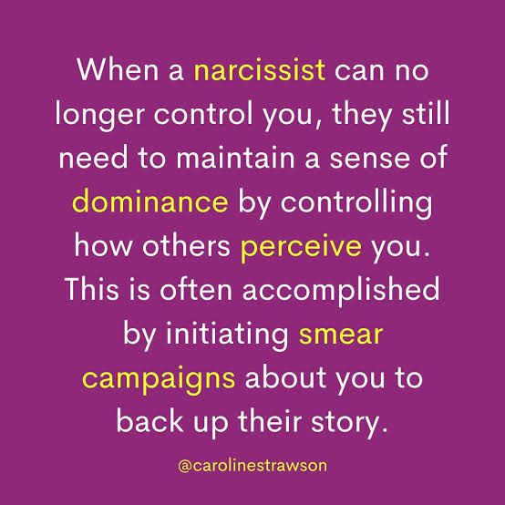 En hel del av det jag beskrivit här pågår för fullt. Jag tror inte det är ”full monty” smear campaign ännu men den är nog påbörjad. Narcissister ser alltid till att ha en plan B, särskilt om de känner att de riskerar att förlora kontrollen.